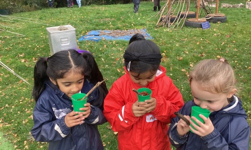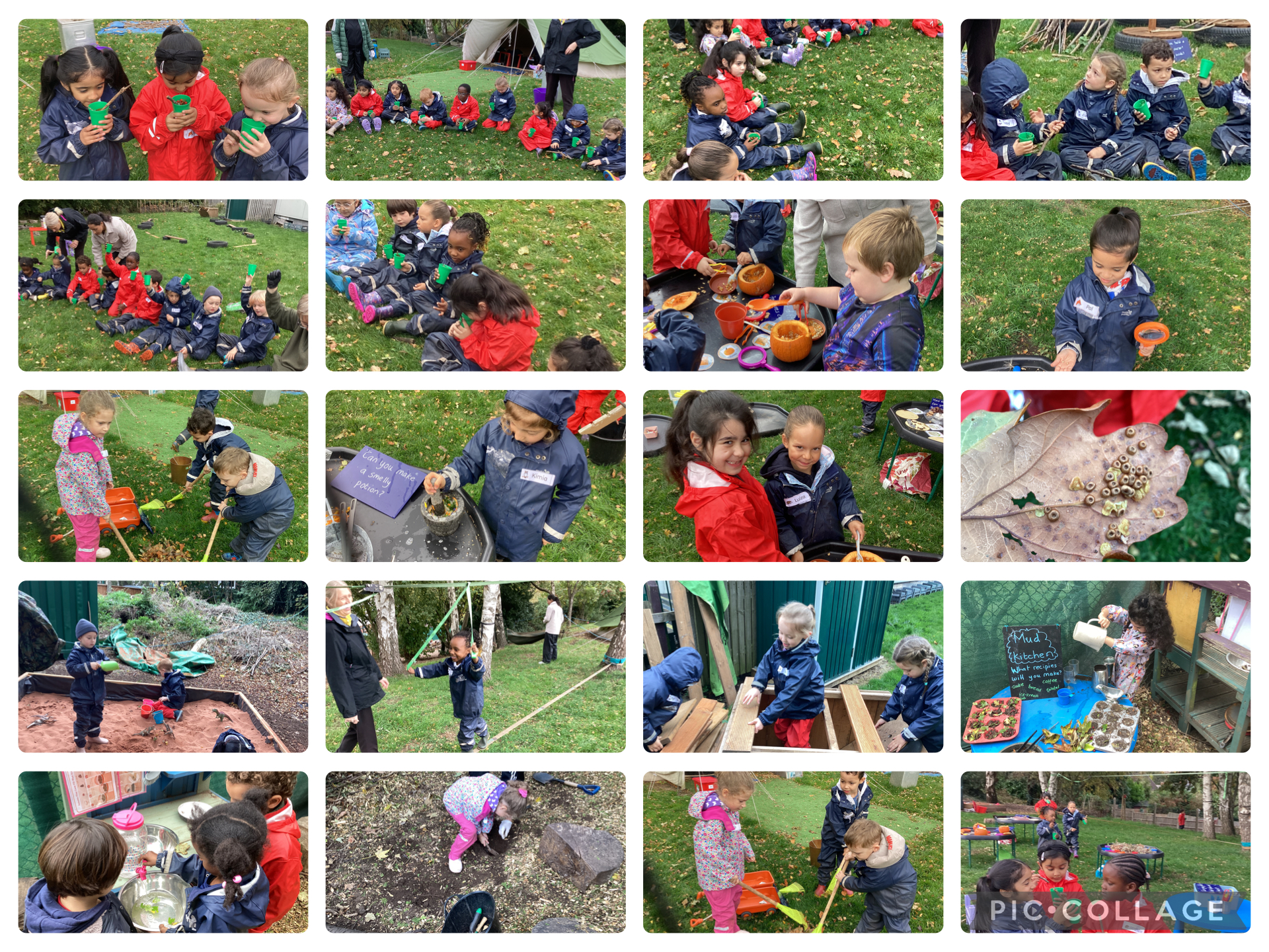 During choosing time, the fun continued as we used our senses to explore pumpkins, experiment with sounds using water and different objects, and concoct all sorts of smelly potions. There was building with guttering, treasure hunting in the sandpit, lots of digging, bark moving, and of course plenty of muddy adventures in the mud kitchen!