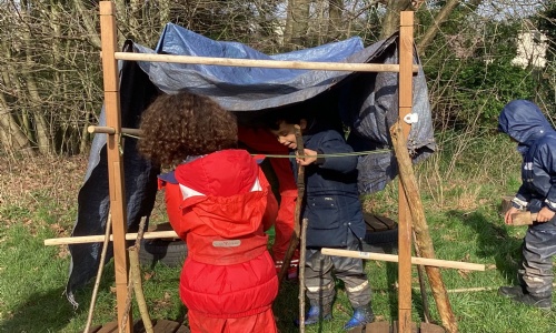 Afterwards, there was plenty of time for free play and exploration. Some children built dens, while others worked with loose parts, thinking carefully about how to use planks, tyres, and sticks safely. Dinosaur fossil discoveries in the sand sparked imaginative play, and some fantastic bird nests appeared (a lovely link, since birds are the closest living relatives of many dinosaurs!).