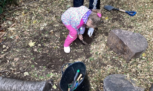 The forest was full of activity and laughter. Little pumpkins from Mrs Jones’ garden were painted in bright colours, potions were mixed to make new shades, and dens were built deep among the trees. There was digging, creating in the mud kitchen, balancing on the slack line, bird feeder making, sand pit adventures, and lots of exploring natural treasures.