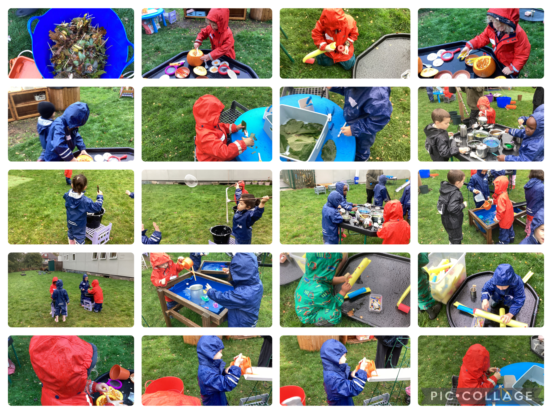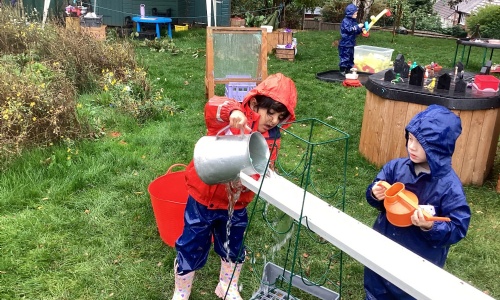 Our pumpkin exploration was popular, with lots of curious faces investigating the seeds and slimy insides.. Children showed great creativity making faces using natural materials, enjoyed hammering activities, and had wonderful fun moving water in imaginative ways. It was lovely to see children working together beautifully, taking turns and sharing ideas.