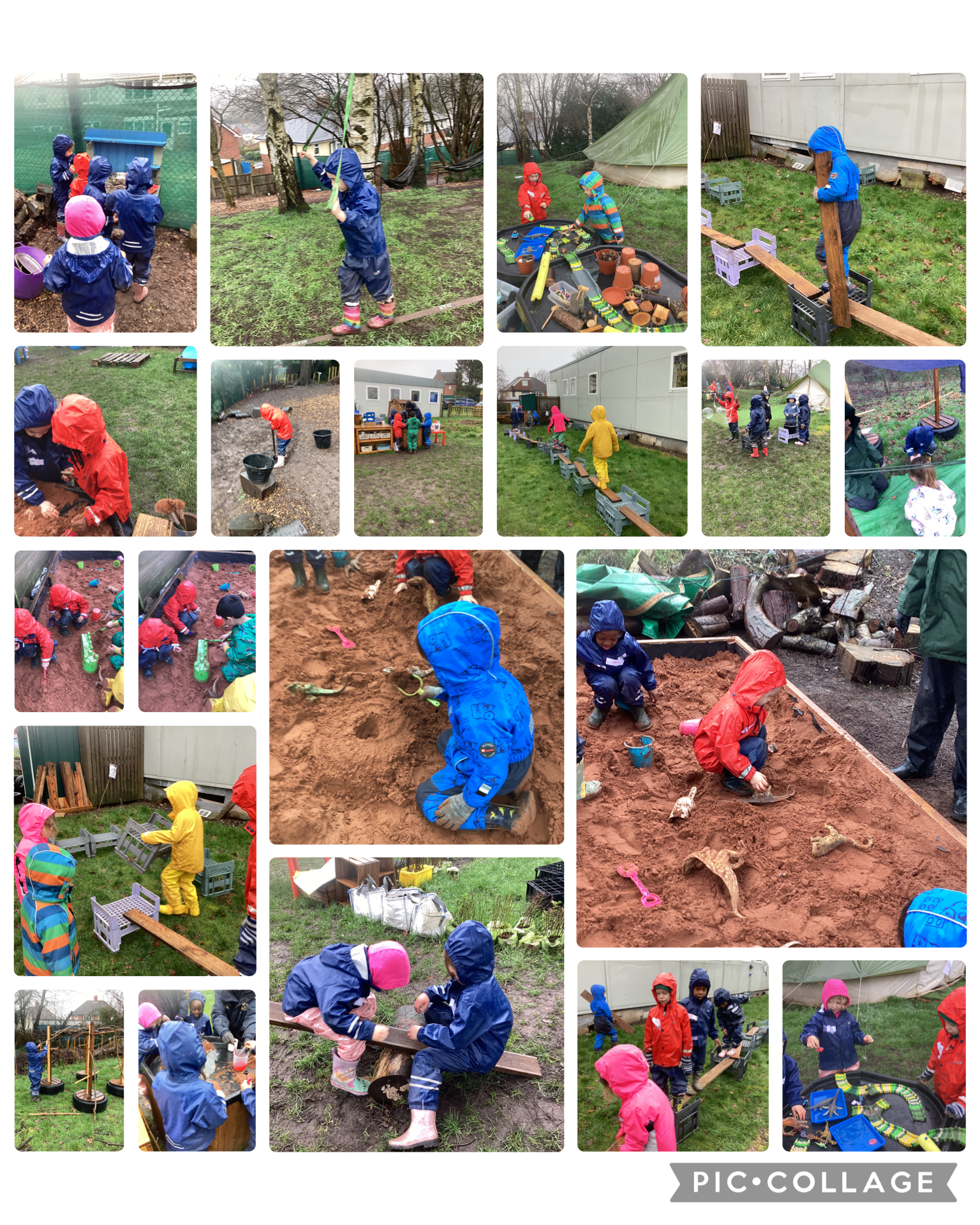 There was plenty of excitement as we uncovered hidden dinosaur fossils and built amazing habitats for our prehistoric friends. The slack line tested our balance, while the sandpit (and a few brave worm diggers!) kept everyone busy. Our imaginative play took off in the mud kitchen, and we worked together to build a safe path across the ‘lava’—thankfully, no feet touched the floor! Making fizzy volcanoes was definitely a highlight, with lots of bubbles and delighted smiles all around.